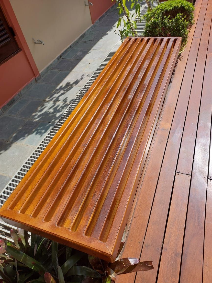 Deck de Cumaru (Cerne) possui maior concentração de durabilidade e resistência natural. Indicado para ambientes externos expostos ao sol e à chuva, garante acabamento sofisticado e desempenho superior.